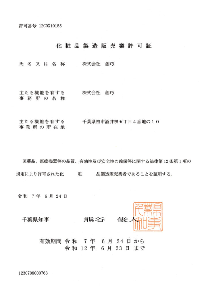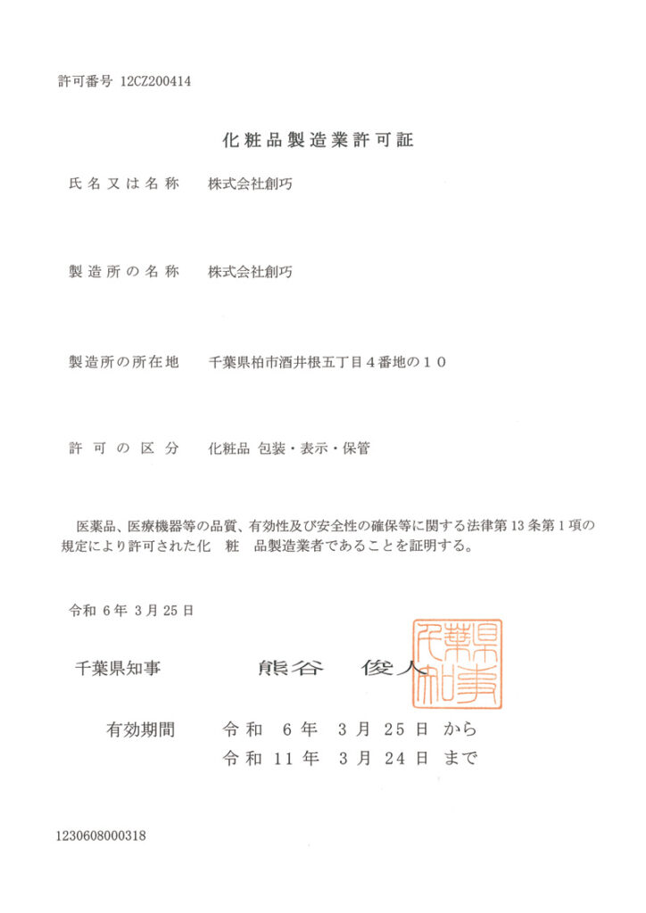 化粧品製造販売許可証
