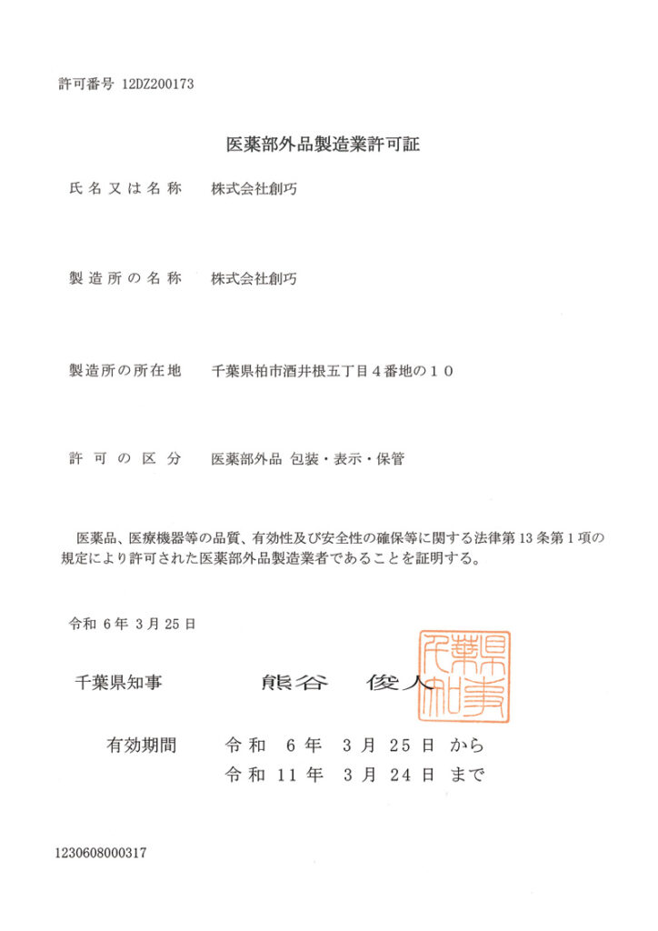 医薬部外品製造許可証